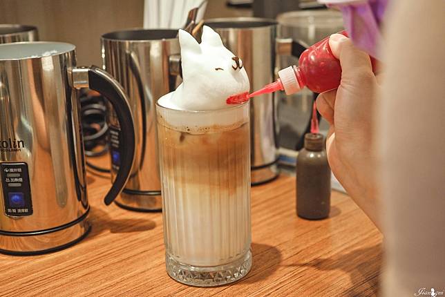 對於不喝咖啡因的人也可以選擇牛奶飲品,一樣可以製作立體拉花。這杯是隔壁小朋友的牛奶拉花,小朋友選了白熊,闆娘貼心幫小朋友製作了菜單上沒有的角落生物裡的白熊,算是隱藏版喔!不過這得要看闆娘『心情』製作~有時後會突如其來送上驚喜,讓客人受寵若驚呢!