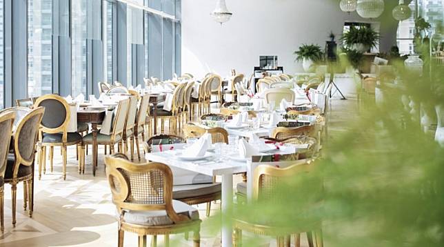 除此之外,綠萼 159 的餐廳裝潢也堪稱一絕,餐廳外圍有著大量的綠色植栽,而餐廳內部則是白色的餐桌椅,而且空間很寬敞!今年情人節推薦你帶上另一半來場夢幻的法式約會吧 🍾️