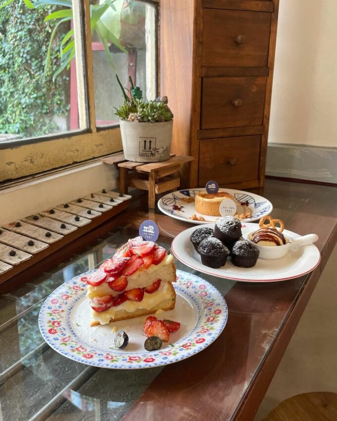 老院子1951是一家隱藏在街道內的文青小店,店外綠植滿佈,走進店裡則有另一種風情,牆上的老窗櫺、綠色鐵扇、學生課桌椅,隨處都充滿濃濃的懷舊復古氛圍,彷彿進到了精神時光屋。老院子的前身原本是外帶飲料店,後來在進駐老屋後,也增加販賣一些甜點、輕食、關東煮等品項,店內的甜點都是當天限量的,其中草莓塔、焦糖蘋果乳酪,都是大家推薦的必點之一,搭配上一杯手沖茶或咖啡,在這裡度過悠閒的午後。