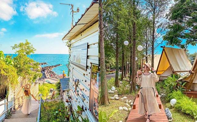 說是漁港「柴山小漁港」其實原本只是當地漁民設置的簡易碼頭,熱門的階梯景從龍哥土雞城旁樓梯走下去通往海邊的階梯,消波堤防上可拍到的遼闊的海景配夕陽都美到像是到了島國渡假。