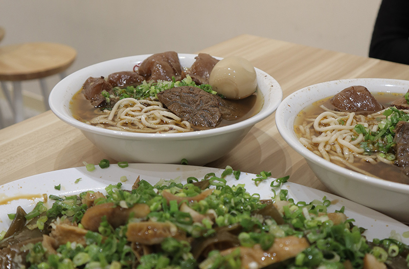 來自桃園的牛肉麵老店「巧合珍」首度跨足台北,同樣也選在松江南京。經典的「半肉半筋牛肉麵」他們家就是豪邁的完完整整一塊超大的牛筋、牛腱,湯頭口味甘甜帶點中藥的甘苦味,越喝越順口,份量非常足夠!在這,滷味也是必吃菜單之一,多種牛雜、滷菜任君挑選,再鋪上滿滿青蔥,搭配上店家特製辣椒油真的好過癮。