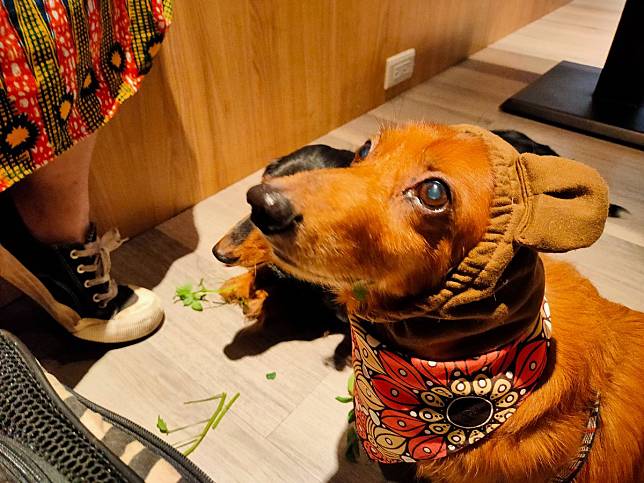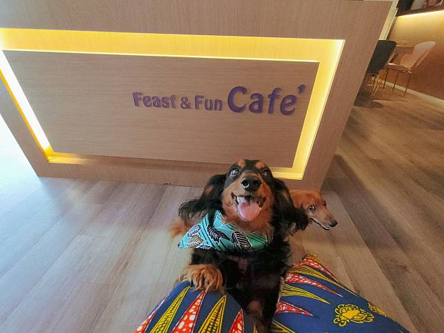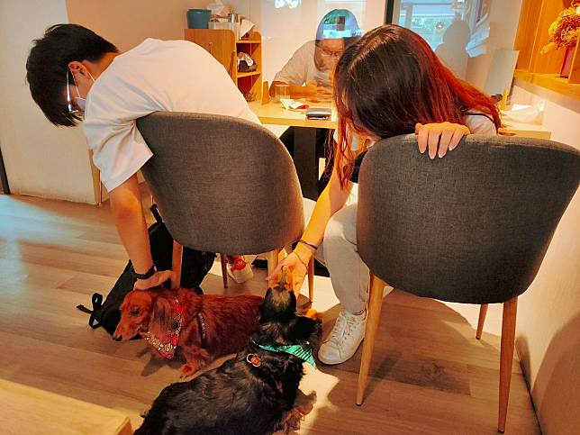 店裡也很歡迎吃貨們帶著家裡的毛孩來到這邊一起度過愉快的時光。這次帶了咱們家的兩個開心果-臘臘與腸腸一起來玩。