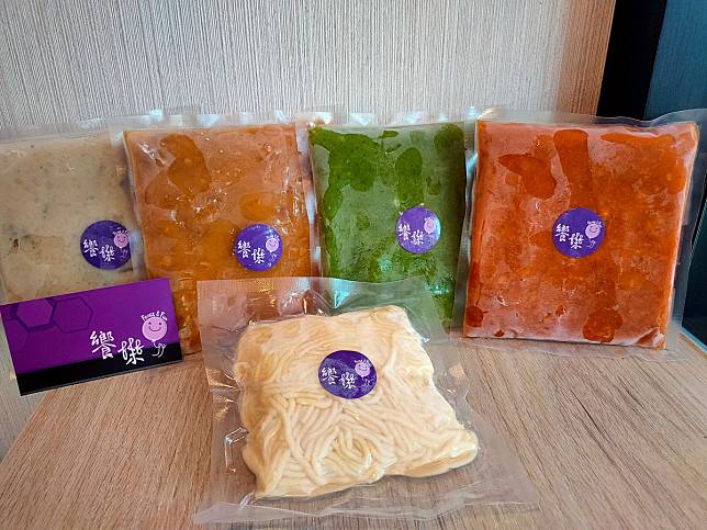 下單才製做的手工自製醬料包,不添加香精、色素、防腐劑,有四種口味可以訂購,分別是菌菇白醬、辣奶油培根、茄汁肉醬、羅勒青醬,讓吃貨們在家也可以輕鬆享用饗樂餐廳用心料理的迷人風味。