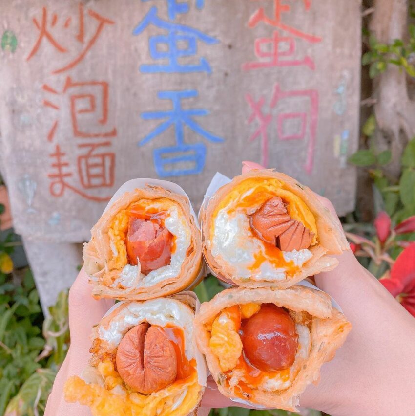 初來乍到金門,處處都能見到掛著蛋狗、蛋香的小吃攤販,讓人不禁懷疑到底這葫蘆裡賣的是什麼?不妨來到國軍弟兄大力推薦的「合泉購物中心」一探究竟!其實蛋狗就是蛋餅包熱狗,蛋香則是蛋餅夾香腸,另外招牌餐點還有炒泡麵,這些都是為了能讓久駐的阿兵哥們換換口味,又能填飽肚子,進而衍生出來的戰地美食。想嚐嚐抽中金馬獎的當兵滋味,那就非得來份蛋狗配炒泡麵囉!