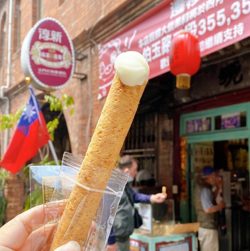 高粱幾乎成了金門的代名詞,除了給自己斟上一杯高粱酒外,其實高梁還可做出許多變化!這間毅力於模範街上的淳新高粱手工蛋捲,特別將高梁米融入麵糊中,讓大家從蛋捲嚐到高梁米最單純的香氣!除了大包裝外,想嚐鮮的朋友也可現場跟老闆購買單支蛋捲,並搭配冰淇淋一起享用,口感更加豐富!
