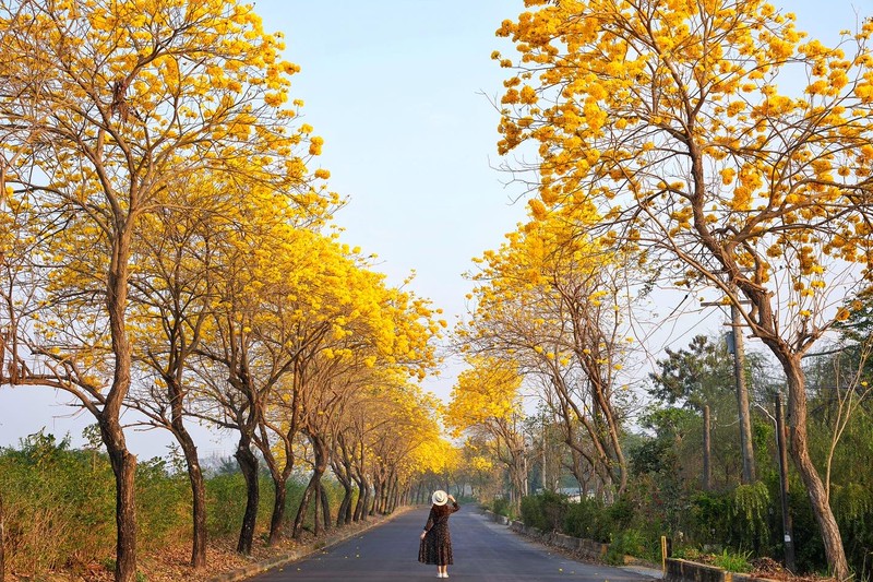 隨著春天緩緩的來臨,大地也紛紛染上了繽紛的色彩,近期金黃燦爛的黃花風鈴木在全台各地炸開,而嘉義行嘉吊橋附近有一整排的黃花風鈴木也已綻放,如此美景被許多人譽為全台最美的風鈴木隧道,快點把握花期來漫步在黃色花海之中吧!