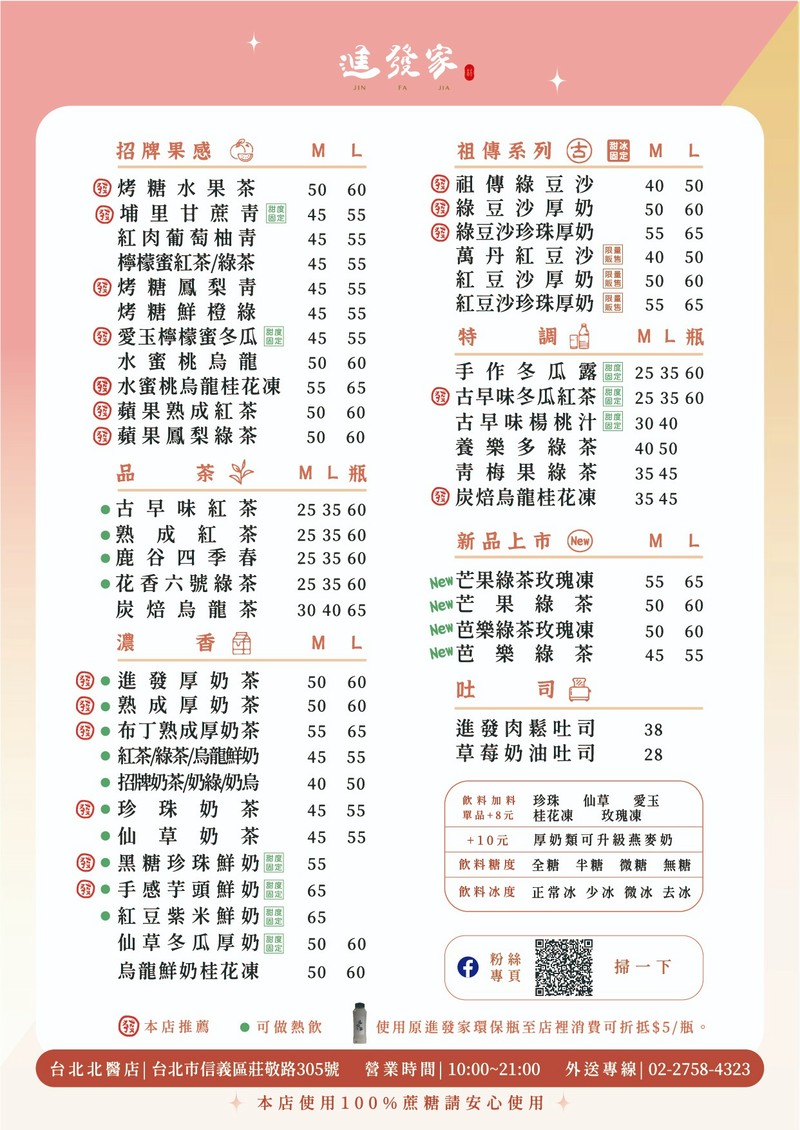☎️ 02-2758-4323 [預約訂單、即時外送] 🛵 外送距離: - 50m~1km:折後滿200元 - 1.1km~2km:折後滿350元 - 2.1km~3km:折後滿500元 ※ 加入LINE官方帳號:https://lin.ee/YFHVofs 立即獲得【中杯綠豆沙免費升級大杯乙杯】優惠券一張,以及最新好康情報、更多優惠券、一對一線上點餐服務!