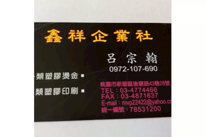 鑫祥企業社–桃園新屋燙金加工、桃園塑膠印刷、桃園塑膠燙金首選