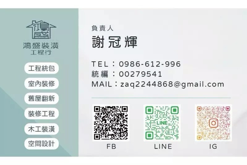 🏠【鴻盛裝潢工程行】|為每一個空間注入溫度與生命力在家的模樣中,有人追求極簡純粹、有人喜歡溫馨柔和、也有人嚮往工業個性風——不論是哪一種風格,【鴻盛裝潢工程行】始終秉持「專業、細膩、誠信、如己屋般對待」的理念,為每一位客戶量身打造理想中的居住與商業空間。我們深知,每一段裝修過程,都是一場關於「信任」與「責任」的長跑。從第一張圖紙的構思、第一片木料的敲釘,到最後一盞燈飾點亮空間,【鴻盛裝潢】都用心走好每一步,力求完美呈現。🔧 專業根基|累積近10年工程經驗自成立以來,【鴻盛裝潢工程行】擁有多年的裝潢經驗,服務項目橫跨住家、商空、店面等不同空間類型,從工程統包到細緻木作,皆有完整的施工體系與標準流程。我們擁有一支經驗豐富的專業團隊,能精準掌握設計與工程需求,並針對預算、坪數、功能、動線等關鍵因素,提供高效率、高品質的空間規劃與施工方案。📐 全方位服務|設計到完工一條龍搞定我們提供一條龍的「室內設計 + 工程統包 + 施作管理」服務,讓客戶免去多方協調的煩惱。我們深信裝潢不只是硬體施工,更包含設計美感、空間配置與生活機能的結合,因此在每一次的案件中,我們都會依據客戶需求量身規劃,並提供3D模擬圖與動線分析,讓您在工程開始前即能預見理想的未來空間。🪚 專業項目包括✔ 工程統包|確保整體工程流暢無斷點✔ 室內裝修|依使用需求調整格局與風格✔ 舊屋翻新|注入新生命,提升居住品質✔ 木工裝潢|訂製櫃體、天花板、電視牆等✔ 空間設計規劃|兼具美感與實用的專業設計✨ 用心服務的每一個細節我們知道,一個讓人住得安心的家,不僅要漂亮,更要安全與實用。因此我們在材料選擇上嚴格把關,並與多家合格廠商合作,保證工程品質;施工過程中定期回報進度,透明化管理,確保工程進展與品質同步掌控;施工後也提供完善保固與售後服務,讓您無後顧之憂。📍 服務範圍廣泛|深耕南部,口碑口耳相傳目前我們的主要服務區域包含【台南、高雄】,不論是老屋翻新、店面改裝,或新成屋裝修,我們都能依據地區環境與風格趨勢,給予最合適的設計建議與施工規劃。在地經營多年,累積了許多長期配合的業主與裝潢設計合作夥伴,口碑深受肯定。🌟 品牌精