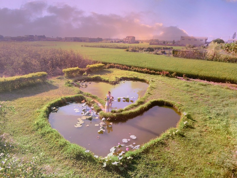 位於大村鄉平和村的雙心池塘是一處充滿藝術與自然美景的地方🌸。