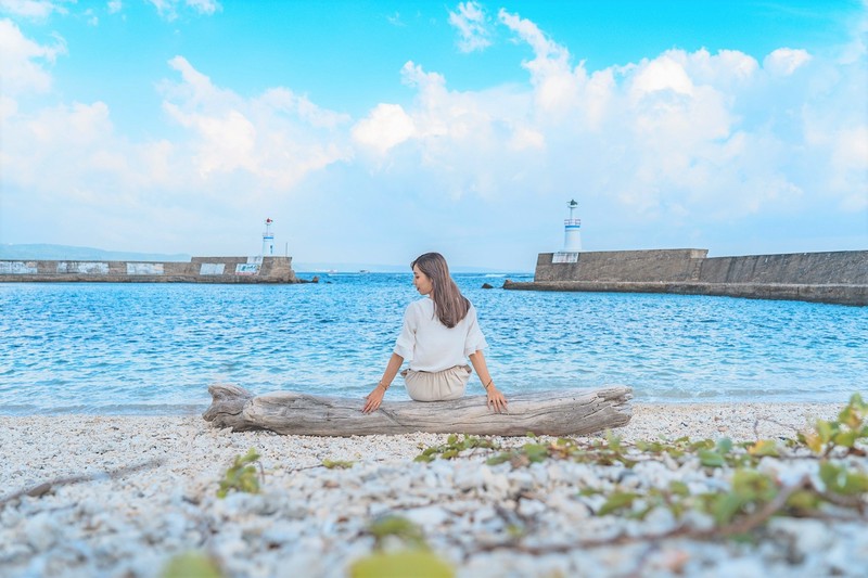位於後壁湖漁港的星砂灣可以說是墾丁最美海灘,擁有米白色貝殼沙灘、蒂芬尼綠大海色、堤防與燈塔,怎麼拍怎麼美!(免費參觀)