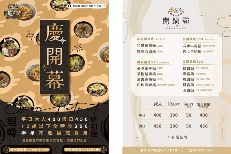 在繁忙的生活節奏中,誰不渴望一頓既美味又飽足的餐點?如今,新竹迎來了一個絕佳的美食天堂——開鍋霸旋轉吃到飽!這是一家致力於滿足顧客味蕾和胃口的旋轉小火鍋餐廳。這裡不僅提供多種選擇的商品,還讓顧客能夠享受無限暢吃的快樂。無論你是肉食愛好者、蔬菜控,還是甜品迷,這裡都能讓你“飽霸”到心滿意足。 ✨全新竹唯一的吃到飽旋轉小火鍋✨開鍋霸旋轉吃到飽作為全新竹唯一的吃到飽旋轉小火鍋餐廳,無疑是火鍋愛好者的天堂,店內共18個座位,也可接受包場服務。餐廳內設計了獨特的旋轉火鍋傳送帶,讓每位顧客在座位上就能輕鬆選擇自己喜愛的食材,完全不用起身排隊取餐。這種新穎的用餐方式不僅提升了用餐體驗,也讓顧客享受到了更多的自由與便利。▶️多種商品選擇,滿足每個人的口味在開鍋霸旋轉吃到飽,顧客可以選擇豐富多樣的火鍋料和食材,包括各類新鮮的海鮮、火鍋丸子、豐富的蔬菜以及多種湯底。無論你喜歡清淡的白湯、濃郁的湯頭還是健康的昆布湯,這裡都能滿足你的需求。顧客可以根據自己的口味,隨心所欲地搭配湯底和食材,創造出屬於自己的專屬火鍋。 ▶️任選肉品,現切牛羊豬雞盡在此開鍋霸的另一大亮點就是現切的各類肉品。無論是鮮嫩多汁的牛肉、嫩滑的羊肉,還是鮮美的豬肉和美味雞肉是用整支雞腿雞肉,這裡都能提供最高品質的選擇。餐廳堅持選用新鮮的食材,每一片肉都是當場現切,保證最佳的口感與風味。對於喜歡肉食的顧客來說,這無疑是一次味覺的饗宴,無需擔心吃不飽,只怕你吃不夠!❣️甜入心的甜品,為美食畫上完美句號❣️在一頓美味的火鍋之後,甜品是不可或缺的收尾佳品。開鍋霸為顧客準備了各種甜點,這些甜品不僅僅是味道上的享受,更是視覺上的享宴,讓顧客在滿足味蕾的同時,也能感受到心靈的愉悅。餐廳從設計到服務,每一個細節都充分考慮到顧客的需求,力求讓每一位顧客都能享受到舒適、滿意的用餐體驗。 無論你是與家人朋友一同前來,還是獨自享受這份美味,這裡都能提供讓你感到賓至如歸的服務。在這裡,你可以隨心所欲地選擇各種美味食材,享受無限暢吃的樂趣。不怕你吃!只怕你吃不飽!來到這裡,讓我們一起開鍋霸吃霸喝霸飽霸,飽到天靈蓋!📍聯絡電話:03-5220251LI