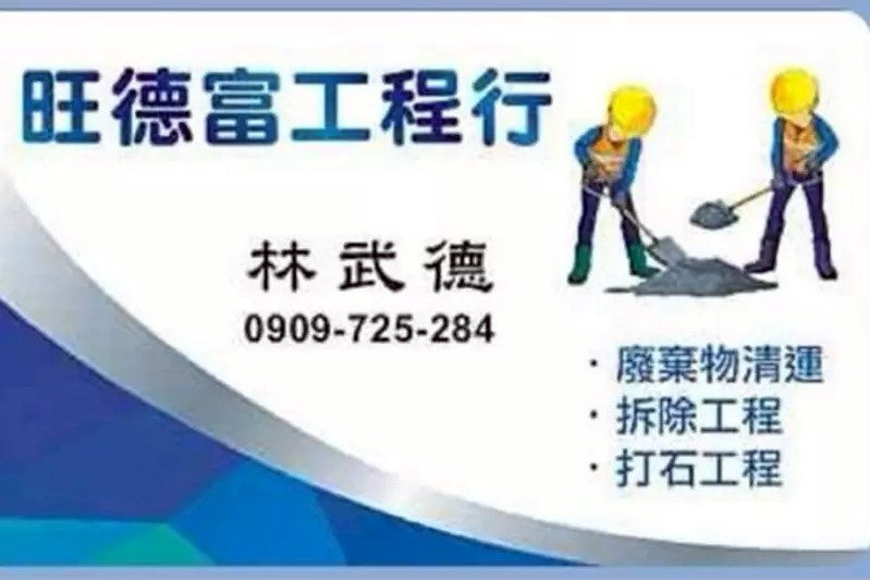 旺德富工程行位於新北市土城區,是一家專業合法經營的拆除與清運公司,主要提供 廢棄物清運、裝潢廢棄物清運、營建廢棄物清運、建築廢棄物清運、家庭廢棄物清運、垃圾清運,以及 拆除工程、打石工程、裝潢拆除、室內外拆除、房屋拆除、店面拆除、廠房拆除 等服務。我們擁有專業團隊與合法處理管道,能快速安全完成各類工程與清運需求。服務範圍涵蓋 新竹、桃園、台北、新北、基隆,新竹以北地區皆可安心委託。