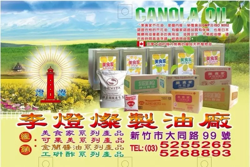 李燈燦麻油是李燈燦先生60年前在新竹成立,從最初的巷內小店憑藉品質與口碑慢慢拓展至今,並申請燈塔標誌作為品牌形象。至今已傳到第三代,生產設備隨著科技進步不斷更新,但是原料、品質與製作方式從來沒有變過。秉持良心企業的初衷,所有產品不含人工添加物,採用品質優良來源地明確原料,讓李燈燦所有產品在食用油風暴期間,通過食品監管單位檢驗。 李燈燦製油廠是新竹地區祖傳三代的老字號製油廠,有將近60年的歷史,專門製造麻油、黑麻油、芝麻醬、香油、苦茶油、辣油…等食用油、料理油、調味料油品。李燈燦製油廠的食用油皆依照古早製造的方式,購買時請認證有「燈塔形狀」的標誌,擁有多年製造經驗,牌子老、信用好,深獲各大小餐廳、自助餐、小吃店等餐飲業者之好評,也深入許多家庭的廚房。 ▶ 自有品牌:李燈燦純麻油、李燈燦芝麻醬、李燈燦香油、李燈燦苦茶油、李燈燦辣油。▶ 代理經銷:美食家沙拉油、美食家芥花油、各廠牌沙拉油、工研醋(工研酢)系列產品、金蘭醬油系列產品、可果美蕃茄醬系列產品。舉凡調味品、調味料、醬油、蠔油、食品香料、沙拉油皆有販售 市話專線:03-5255-265、03-5268-893傳真專線:03-5255-002LINE連結:https://line.me/R/ti/p/@543mjzjj電子信箱:dc5268895@gmail.com地址:新竹市北區大同路99號營業時間:週一到週五08:00-17:30;週六、日休息官網:https://www.leesoil.com.tw/index.html店家日報網址:https://buzzdaily.tw/store/yeh20190131117關鍵字查詢新竹製油廠、新竹製油工廠、新竹食用油製造、新竹料理油製造、麻油、黑麻油、芝麻油、香油、磬油、苦茶油、辣油、食用油品、芝麻醬、小磨麻油、李燈燦麻油、李燈燦芝麻醬、李燈燦香油、李燈燦苦茶油、李燈燦辣油、美食家沙拉油、美食家芥花油、美食家葵花油、各廠牌沙拉油、金蘭醬油、金蘭醬油膏、可果美蕃茄醬、烹大師調味料、工研醋、工研白醋、工研烏醋、工研酢、工研烏酢、調味品以上訊息由李燈燦麻油提供